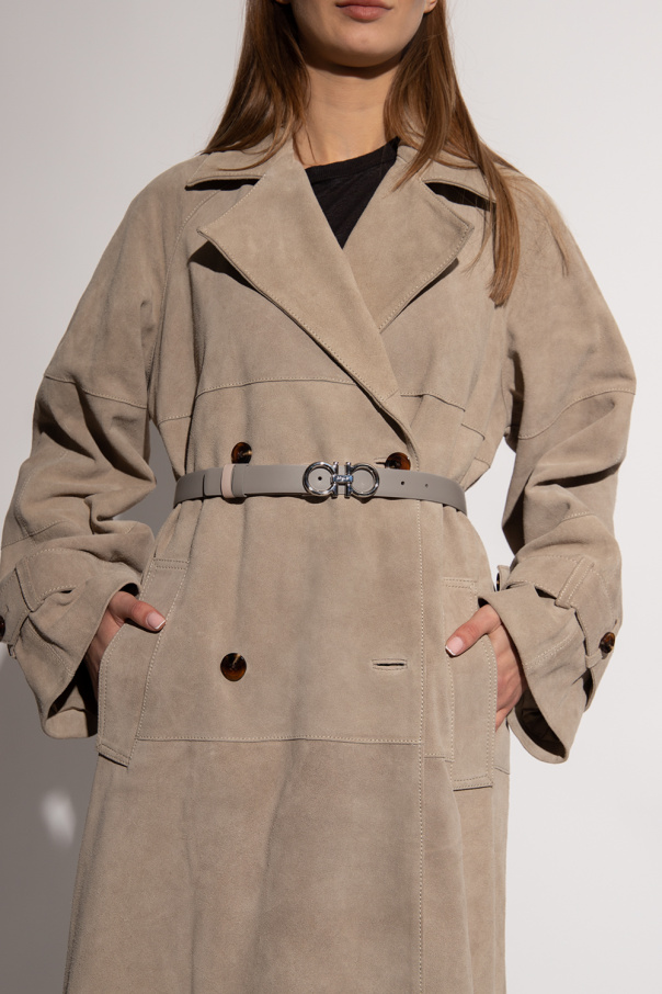 Grey and light pink reversible belt from Salvatore Ferragamo. Made of calf leather, this item features a silver-tone buckle.