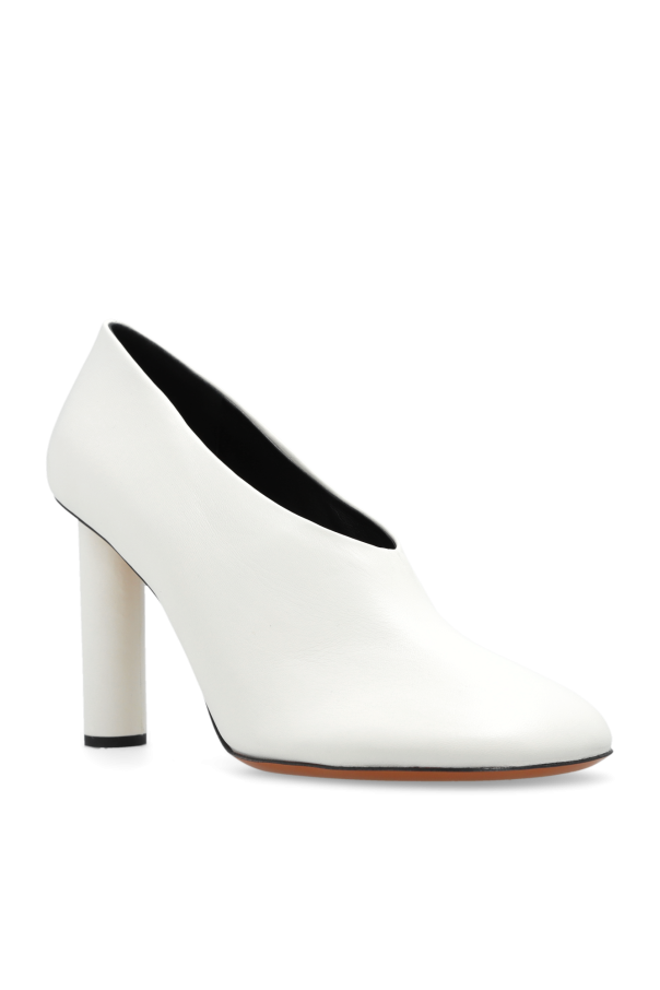White pumps from Proenza Schouler. Made of leather, this model sits on a brown leather sole and features a round toe.