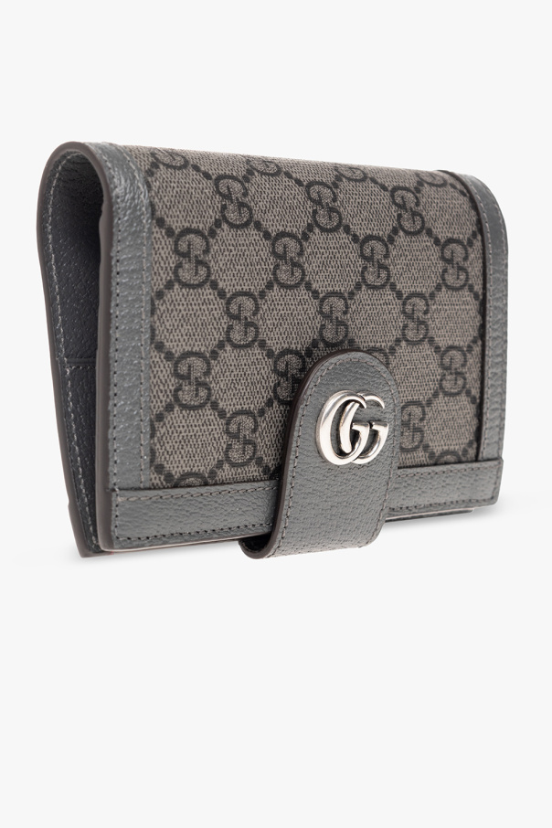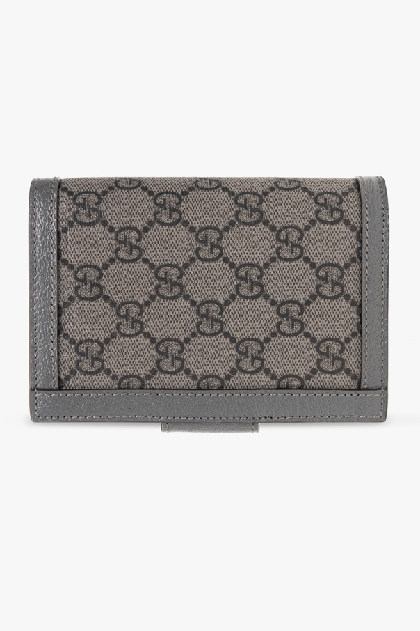 Grey passport holder from Gucci. Crafted in ‘GG Supreme’ canvas, this item features a snap fastening, a silver-tone metal logo application and a passport gusset, two slip pockets and three card slots inside.