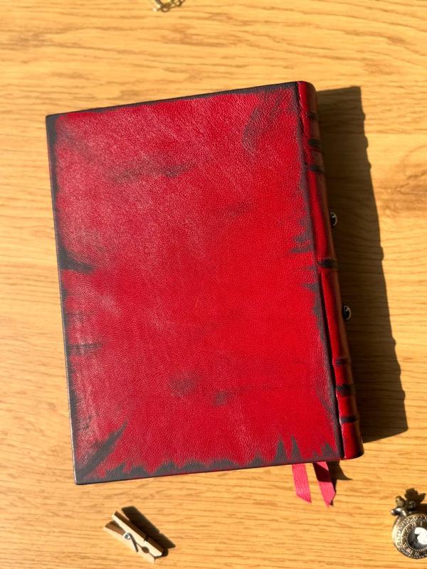 🔻виготовлений із натуральної шкіри (шкіра червоного кольору + тонування по периметру чорною фарбою)
