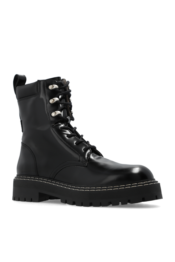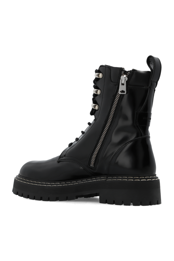 Black ‘Heidi’ ankle boots from AllSaints. Crafted from polished leather, this lace-up pair sits on a black rubber sole and features a side zip, round toe and cream stitching.