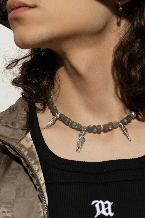 Silver-tone and grey necklace from MISBHV. Made of silver, this item secures with a lobster clasp fastening and showcases decorative minerals.