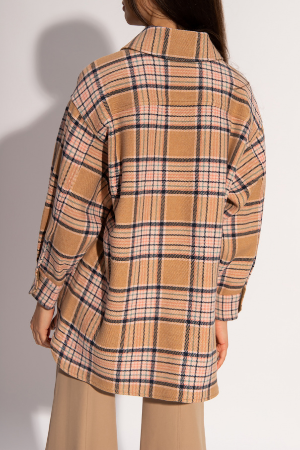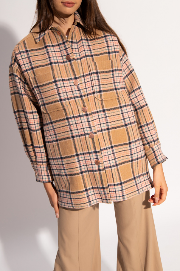 Beige coat from See By Chloé. Made of wool. Fastened with logo-embossed snaps in rose gold-tone, this garment features a multicolored check pattern, four front pockets and long sleeves with snap-fastened cuffs.