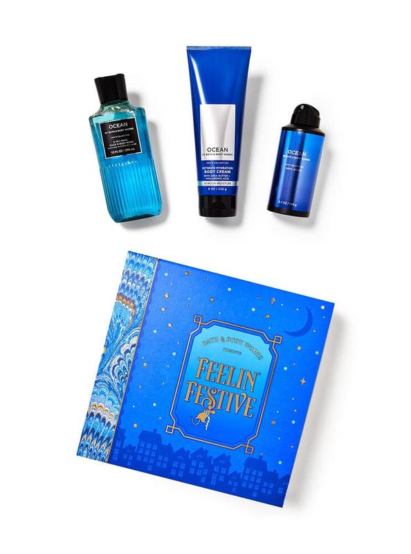 Подчеркните свою индивидуальность с помощью роскошнейшего уходово-парфюмерного набора Ocean от Bath & Body Works. Аромат Ocean - это интригующая освежающе-морская смесь голубого кипариса, ветивера и прибрежного бриза.