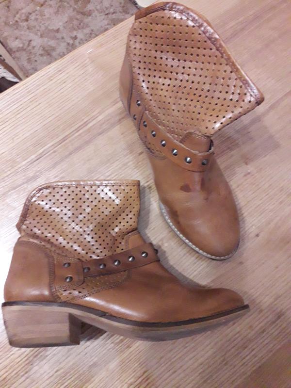 кожаные коричневая полусапожки на р.37, Стелька 23см,высота каблука 4см, красиво забываются, в то же время, и без замочек, практичные, мягкие