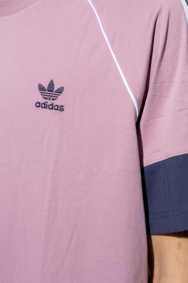 Pink, navy and white T-shirt from ADIDAS Originals. Made of cotton, this garment features a logo embroidery, stripes on the shoulders and a ribbed crew neck.