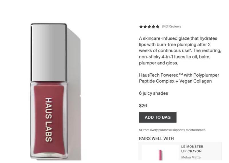 Пептидный комплекс Haus Labs Polyplumper: пухлые губы благодаря передовой комбинации Maxi-LipTM и VoulipTMВеганский коллаген: губы становятся более насыщенными и гладкими