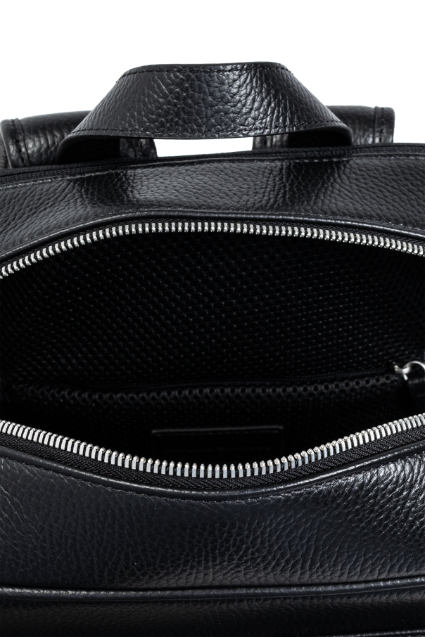 Introducing the pinnacle of sophisticated carrying solutions, the Emporio Armani Leather Backpack. Crafted from the finest grain leather, this exquisite piece features a sleek, rectangular silhouette with softly rounded corners, embodying a fusion of elegance and practicality. The backpack’s opulent black hue and cohesive design, accented with a subtly placed designer logo on the front pocket, evoke an air of understated luxury. Beyond its alluring exterior, the backpack offers a meticulously designed interior compartment, securely enclosed with a high-quality, matching black metal zipper. The front pocket, also zipper-secured, provides easy access to essentials, blending functionality with the bag’s overall polished aesthetic. Comfort is not compromised, thanks to the padded, adjustable shoulder straps and a breathable mesh fabric combination, ensuring optimal ventilation and ease of wear. Additionally, a convenient top handle offers an alternative mode of carriage, making this backpack as versatile as it is stylish. Why Purchase This Product? Luxury Material: High-quality grain leather ensures durability and elegance. Designer Touch: Subtle Emporio Armani logo detailing adds an exclusive feel without overt opulence. Functional Design: Ample storage with an interior compartment and a secure front pocket. Comfortable Use: Ergonomically designed with padded straps and breathable back support. Versatile Elegance: Classic black, seamlessly fitting into any wardrobe with timeless appeal.