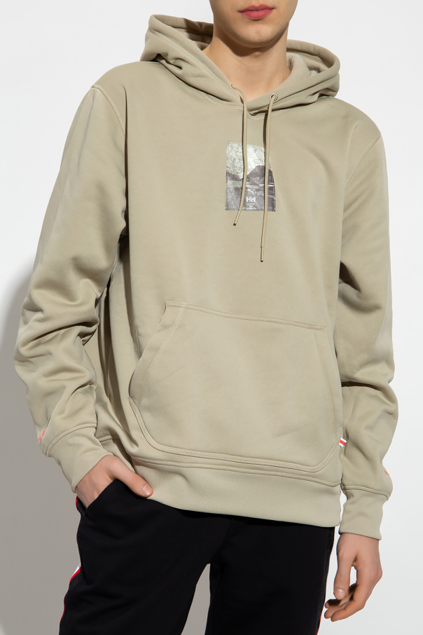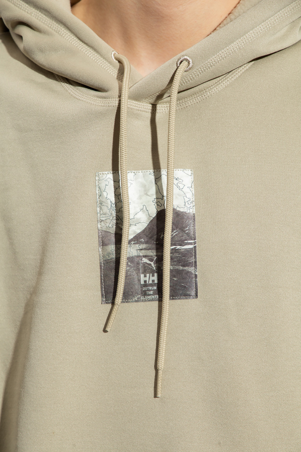 Puma x Helly Hansen green and beige sweatshirt. Decorated with an embroidered pattern. Hood with drawstrings. Slip pocket. Bottom and long sleeves finished with elasticated hem.