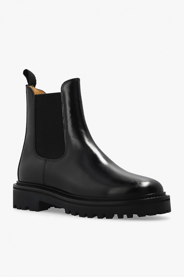 Black ‘Castay’ ankle boots from Isabel Marant. Crafted from smooth calf leather with a slip-on silhouette, this model sits on a black rubber sole and features elastic panels on the sides.