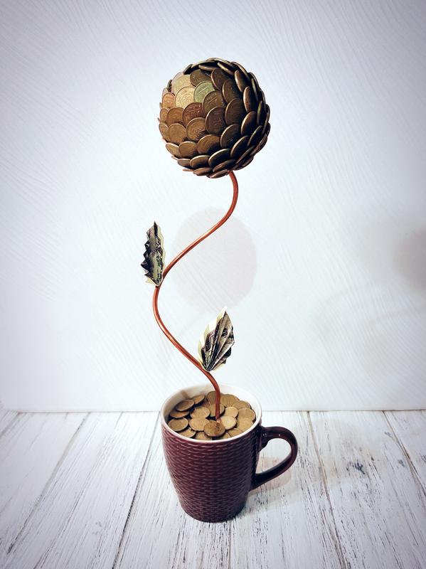 Материалы: Монеты Украины, натуральная медная проволока, сувенирные доллары, гипс, фаянс, гипоаллергенный клей.