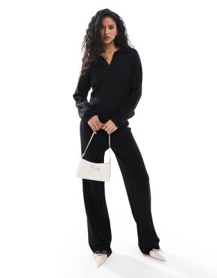 Y.A.S wide rib knitted jumper with open polo neck and trouser co-ord in black