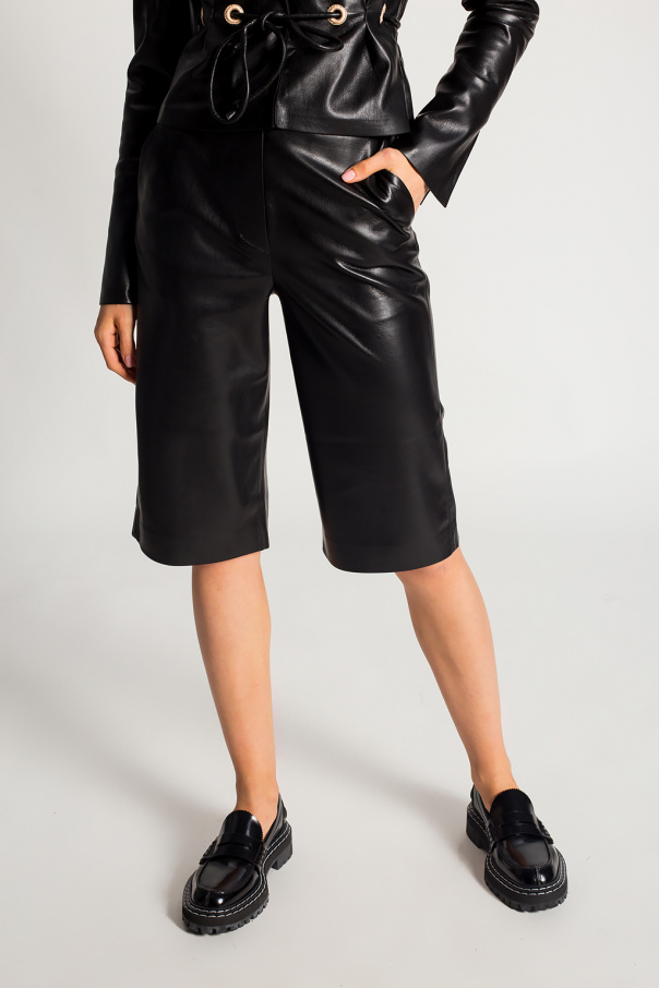 Black shorts from Nanushka. Crafted from vegan leather, this pair features a zip fly with a hook & eye closure and two frontal pockets.