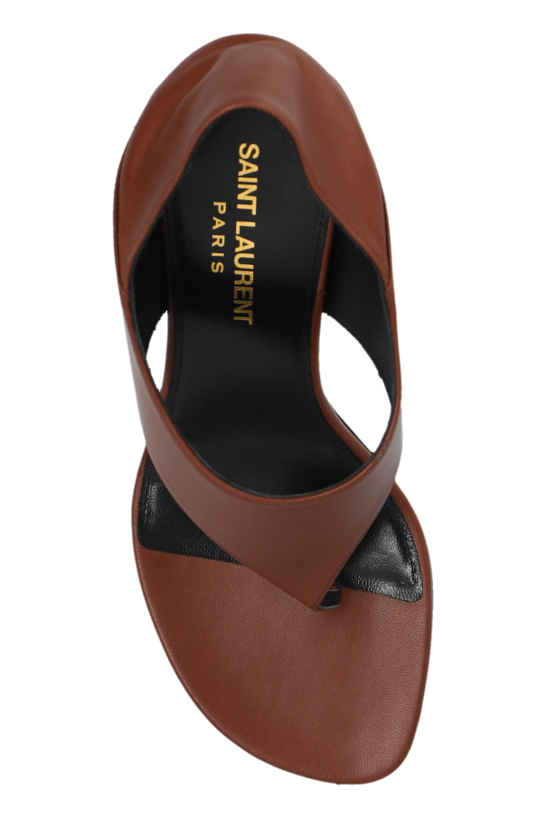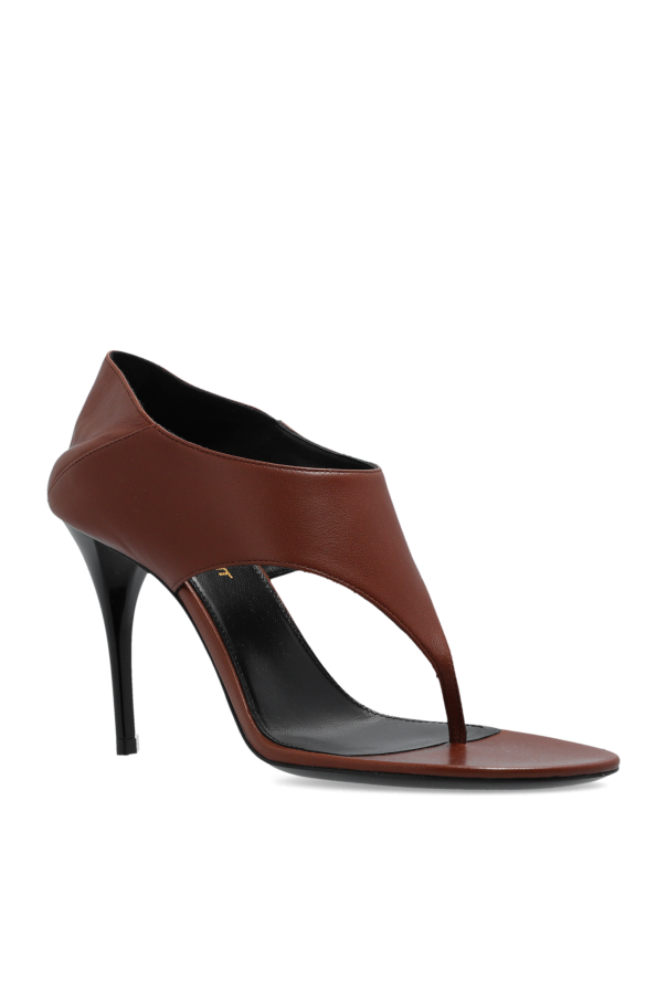 Introducing the epitome of luxury and grace, the "Sand" Heeled Sandals by the renowned designer Saint Laurent. Crafted with meticulous attention to detail, these sandals are a testament to the brand's commitment to quality and elegance. The seamless blend of various shades of brown, from light caramel to dark brown, envelops the feet in a warm embrace, making these sandals a versatile choice for any high-end wardrobe. The classic, elegant shape of the "Sand" sandals, featuring a tasteful toe cutout and a strap across the foot, creates a flattering silhouette that elongates the legs. The luxurious, smooth leather material speaks volumes of the product's premium nature, ensuring not only style but also comfort and durability. The gold-embossed brand logo on the insole serves as a subtle yet powerful statement of exclusivity, while the contrasting black elements, including the sleek, high heels, add a touch of sophistication and allure. Notably, these sandals come equipped with a foldable back strap, allowing for versatility in wear and adding an innovative twist to a classic design. This unique feature, combined with the sandals' monochromatic elegance and the absence of extraneous patterns or embellishments, cements their status as a must-have for special occasions or as a staple in a premium wardrobe. Why invest in the "Sand" Heeled Sandals? Exclusive Design: Directly from the visionary mind of Saint Laurent, offering unparalleled style. Luxurious Material: Made from 100% high-quality leather, promising both luxury and longevity. Versatile Aesthetics: The elegant brown hues ensure compatibility with a wide array of outfits. Unique Features: The foldable back strap adds a practical yet stylish edge to the classic high-heeled sandal. Elegance Amplified: The slender, black heels provide a sophisticated lift, perfect for enhancing any ensemble.