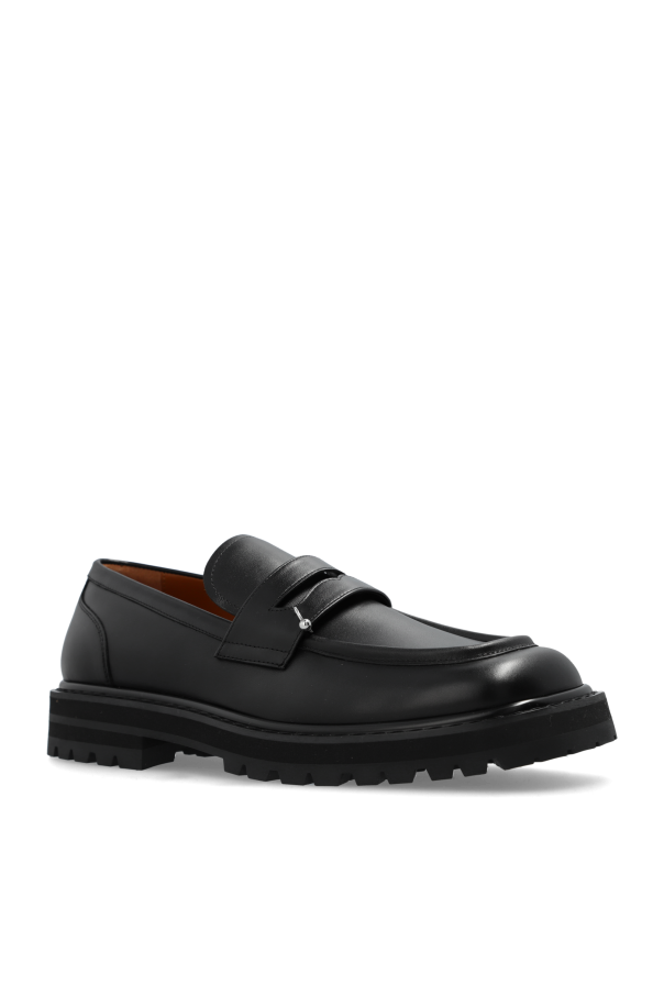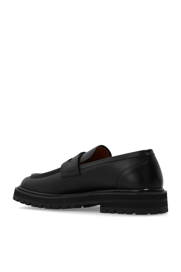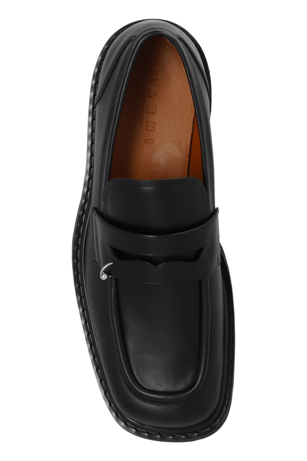 Introducing the epitome of elegance and sophistication: the Marni Black Leather Loafers. Expertly crafted from high-quality leather, these loafers exude a timeless charm, perfectly balanced with modern detailing. The sleek black exterior is complemented by a classic shape featuring a rounded toe and low vamp. The loafers are distinguished by a characteristic strap with a subtle cutout atop the shoe, embodying minimalist sophistication. The thick, rubber sole with a pronounced tread ensures superior grip and stability, adding a contemporary edge to the traditional design. Inside, these loafers are lined with smooth, light-brown leather, providing unparalleled comfort. The interior also features an embossed logo, a testament to Marni's commitment to luxury. These versatile shoes pair effortlessly with both elegant attire and casual ensembles, as evidenced by their styling with wide trousers and a long coat. Why Choose These Loafers? Superior craftsmanship with high-quality leather Timeless design with modern accents Comfortable interior with luxurious leather lining Thick rubber sole for enhanced grip and stability Minimalist design suitable for various occasions