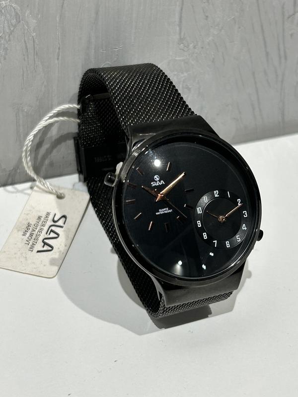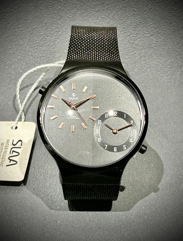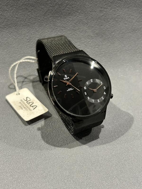 Годинник кварцовий Slava 10385. Незвичний годинник з двома незалежними циферблатами, що приводяться у рух двома незалежними механізмами . Дає можливість виставляти окремо час для різних часових поясів, якщо Ви подорожуєте . Циферблат графічно розділений на дві половини, які переливаються різними відтінками чорного / сірого під деякими кутами падіння світла. Виглядає дуже незвично і стильно. Вологозахисний. Скло мінеральне. Ціна 2000 грн.