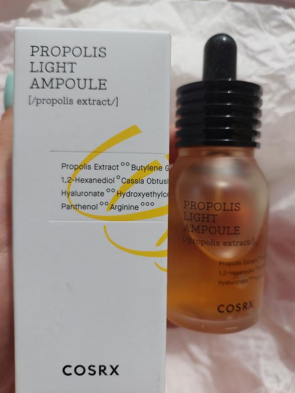 Propolis Light Ampoule от Cosrx - это ампула для мощного ухода за кожей, содержащий 83% экстракта прополиса черной пчелиницы и натуральные увлажняющие ингредиенты, которые сделают ее сияющей и гладкой. Рекомендуется для раздраженной и чувствительной кожи.Сыворотка быстро впитывается и не оставляет липкости. Подходит для использования в любое время года. Она обладает достаточно густой консистенцией, но при этом она быстро поглощается в кожу и не оставляет жирности. Большое содержание экстракта прополиса придает коже здоровое сияние.