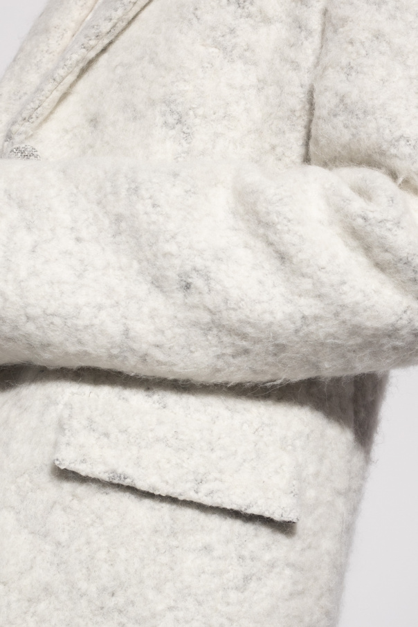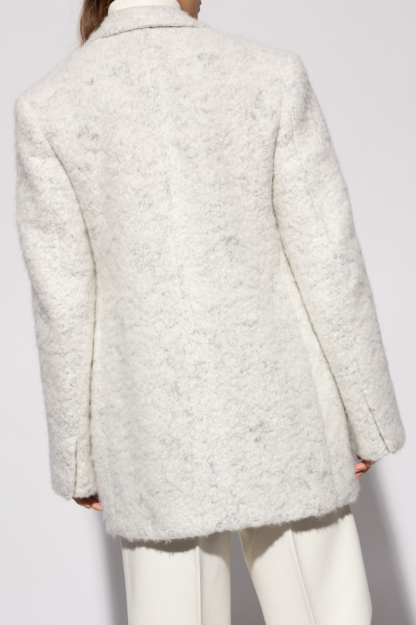 White and black coat from Jil Sander. Made of wool, this style features button fastenings, notch lapels, long sleeves and two flapped pockets on the front.