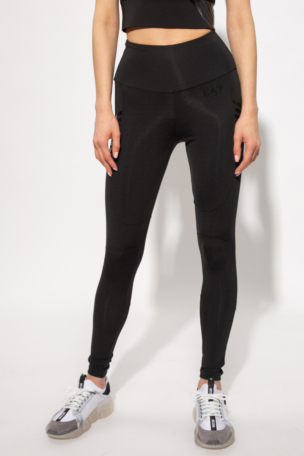 Black training leggings with an elastic waistband and logo detail with rubber trims from EA7 Emporio Armani.