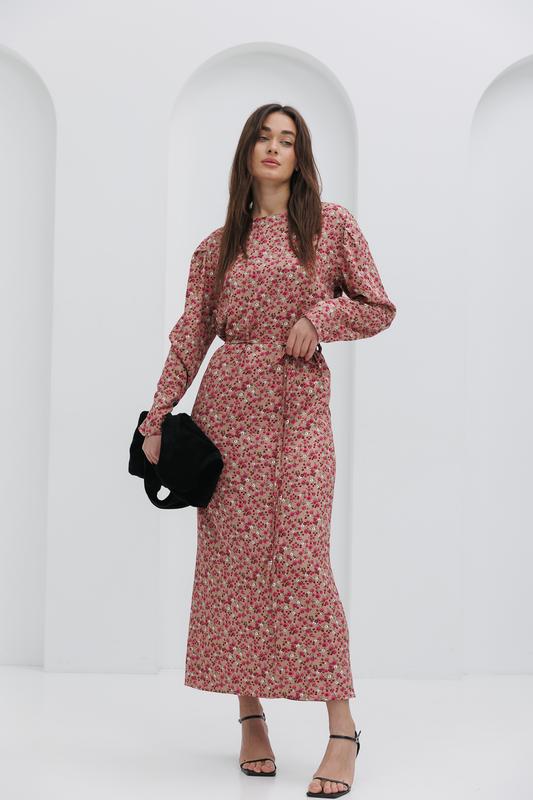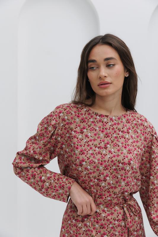 Элегантное цветочное платье с тонким поясом и акцентными рукавами! 😍
