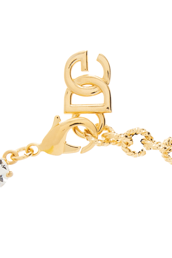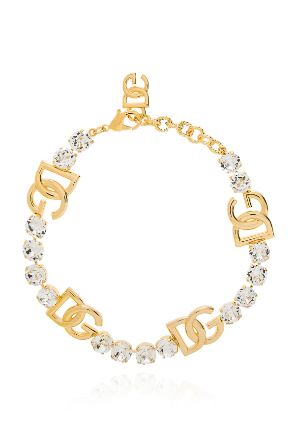 Gold-tone choker Dolce & Gabbana. Made of brass, this item secures with a lobster clasp fastening and showcases logo applications and glistening glass rhinestones.
