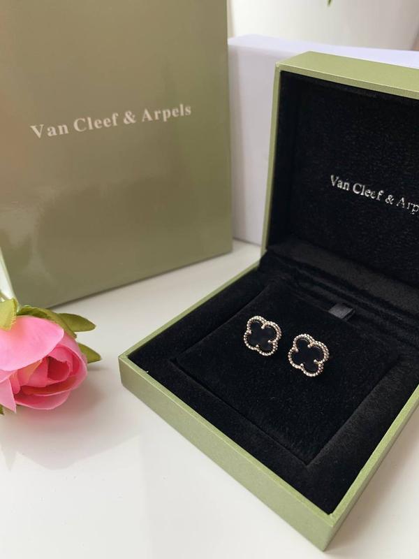 Брендовые серьги-гвоздики в стиле Ван Клиф с покрытием белого золота AU750.
