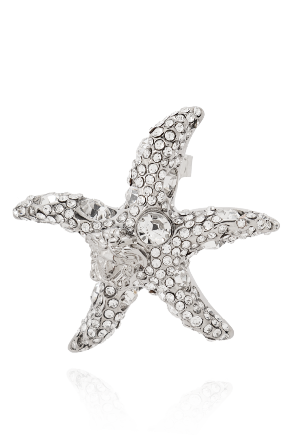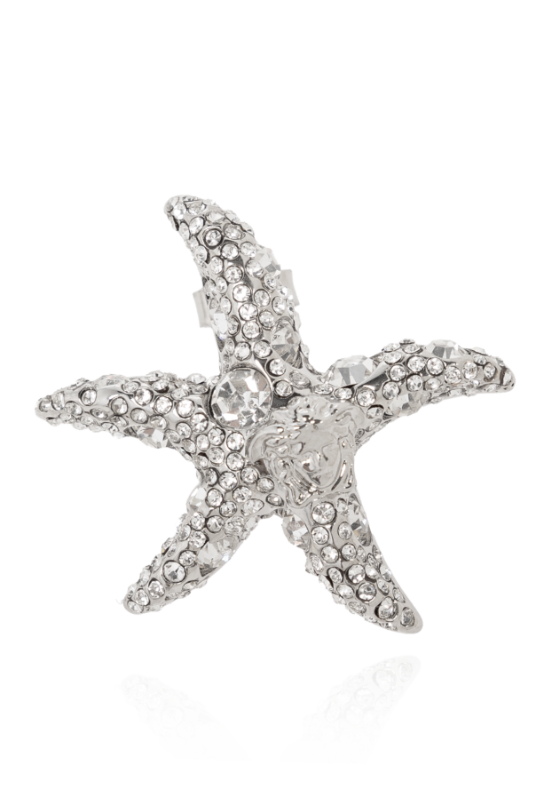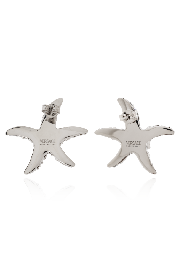 Introducing the Versace Marine Star Earrings, a dazzling embodiment of exquisite craftsmanship and oceanic inspiration. These earrings, shaped in the form of a starfish with five arms, exude a unique and striking allure. Crafted from premium metal and encrusted with a multitude of small crystals or cubic zirconia, they shimmer with an elegance that captures the eye and ignites the imagination. The dominant silver color enhances their versatility and class, making them a perfect accessory for both day-to-day elegance and evening glamour. The presence of the Versace logo on the reverse side of one earring guarantees authenticity and denotes an exclusive design pedigree. Worn as shown on the model's ear, these earrings offer a glimpse into their true scale and the transformative effect they can have upon being adorned. Secured with a stud fastening for ease of wear, the Versace Marine Star Earrings are not just jewelry; they are a statement. Whether accentuating a casual ensemble or complementing a sophisticated evening dress, these earrings promise to bring a touch of luxury and a hint of marine mystery to any outfit. Why Purchase This Product? Exclusive Design: Part of an elite collection by Versace, marked with the designer's logo for authenticity. Unique Shape and Detail: The starfish design with crystal embellishments offers a distinctive elegance. Versatile Elegance: The silver hue ensures these earrings can elevate any outfit, from daily wear to special occasions. Quality Craftsmanship: Made with high-quality materials ensuring durability and lasting beauty.