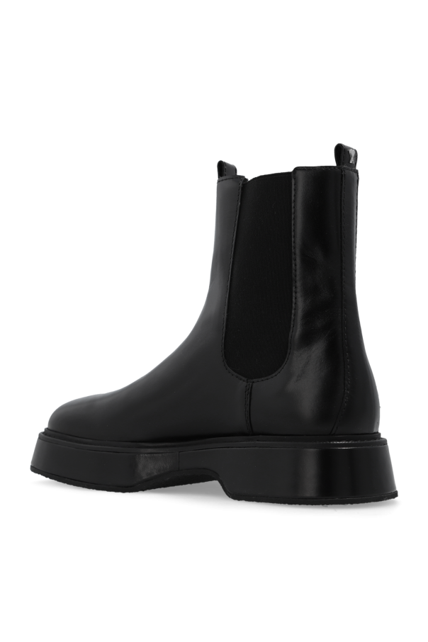 Black Chelsea boots from Ami Alexandre Mattiussi. Made of smooth leather, this model sits on a black rubber sole with a leather trim and features a silver-tone metal logo stud at the back and elastic panels on the sides.