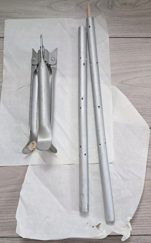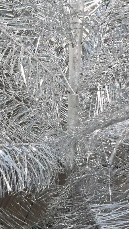 Елочка разборная, состоит из алюминиевого ствола, «треноги» и снежных веточек, вставляются в отверстия.