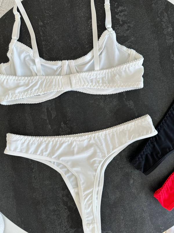 Материал:Полиэстер , Эластан ,Модель трусиков:Стринги ,Чашка:На косточках , Мягкая , Без Push-up ,Форма бюстгальтера:Классическая ,Стиль:Классический ,Посадка:Высокая ,Вид комплекта:С бюстгальтером ,Принт:Без принта , - Shipping