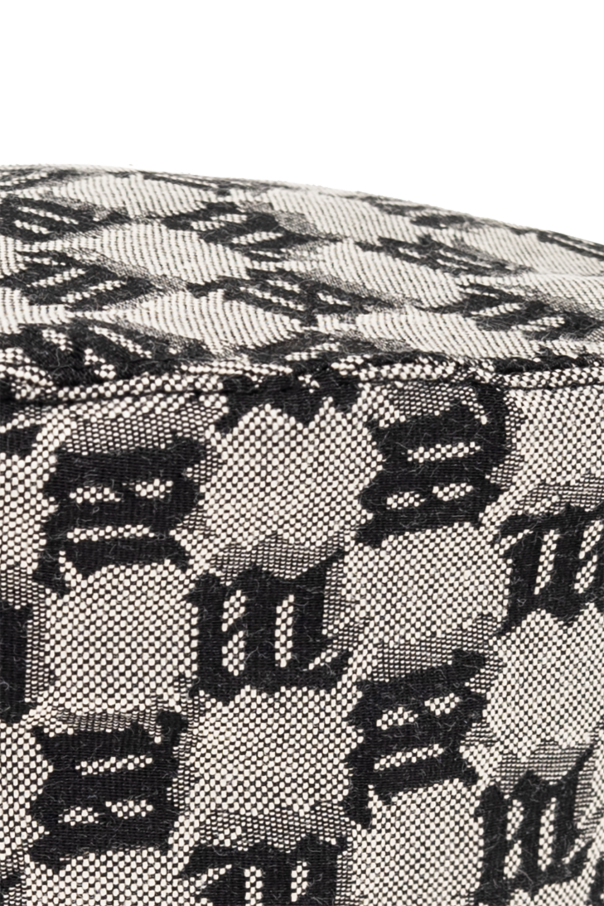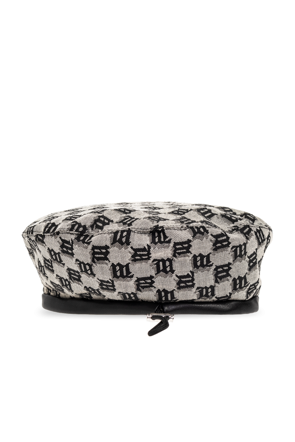 Cream and black beret from MISBHV. Made of cotton, this design features a monogram pattern and drawstrings.