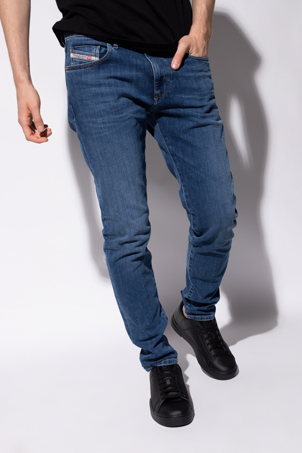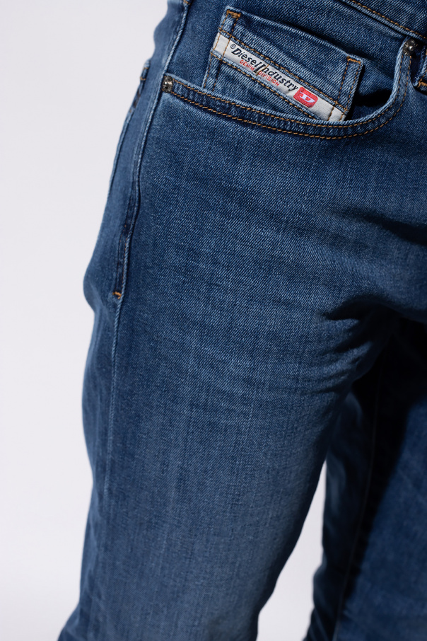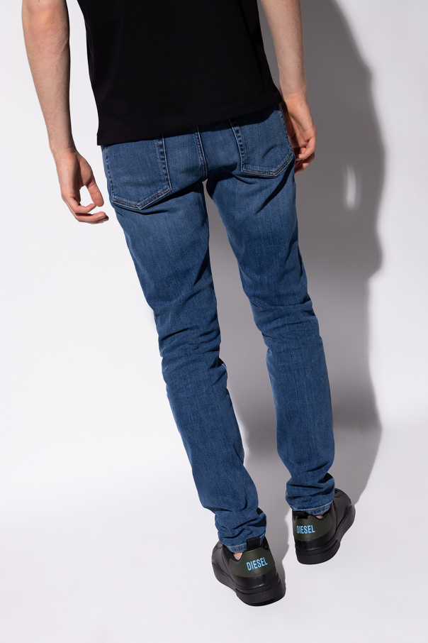 Blue ‘D-Strukt’ slim jeans from Diesel. Crafted from stretch cotton denim, this pair features a zip fly with a button, classic five pockets and an embroidered logo on the back.