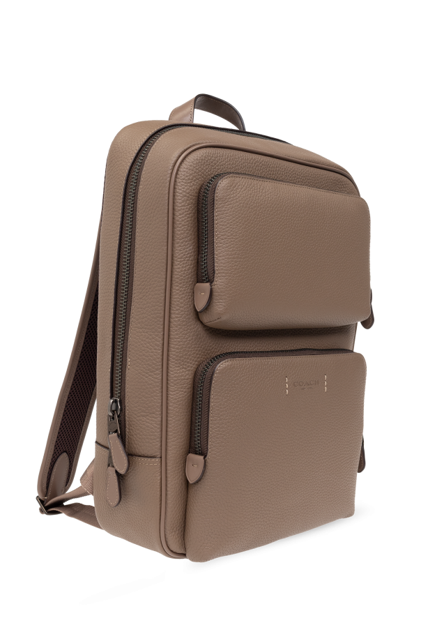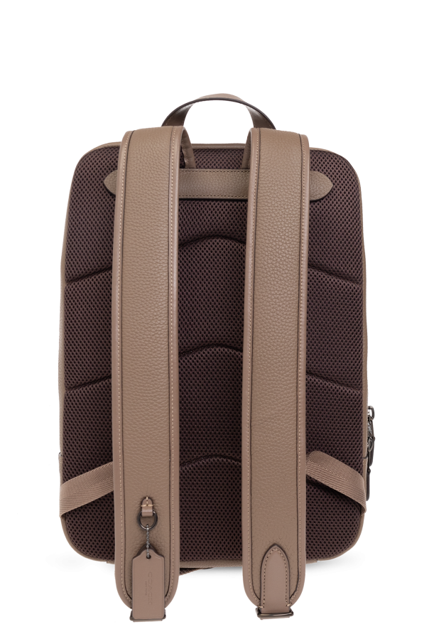 Brown ‘Gotham’ backpack from Coach. Made of leather with fabric trimming, this model is complete with a two-way zip, embossed logo, two zipped front pockets, half-round handle, adjustable shoulder straps and one internal compartment with one zip pocket and multiple slip pockets.