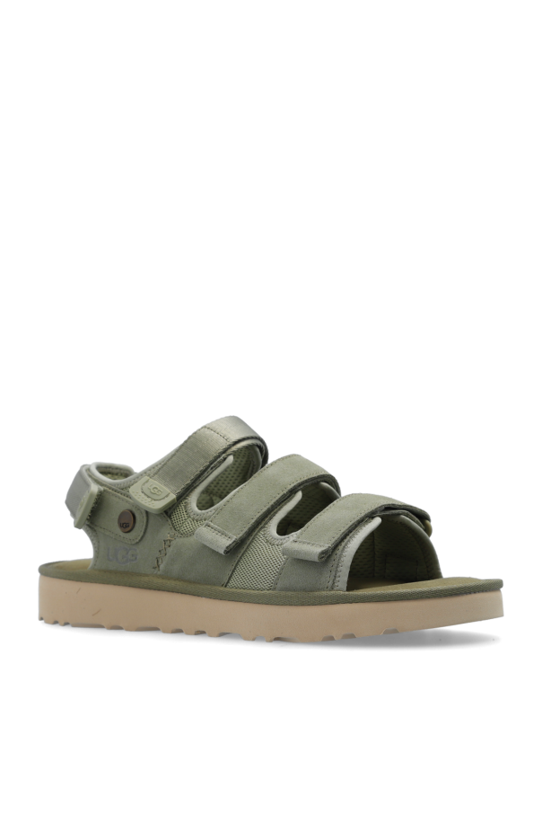Green ‘Goldencoast’ sandals from UGG. Made of suede and fabric, this pair features velcro, an embossed logo and black rubber sole.