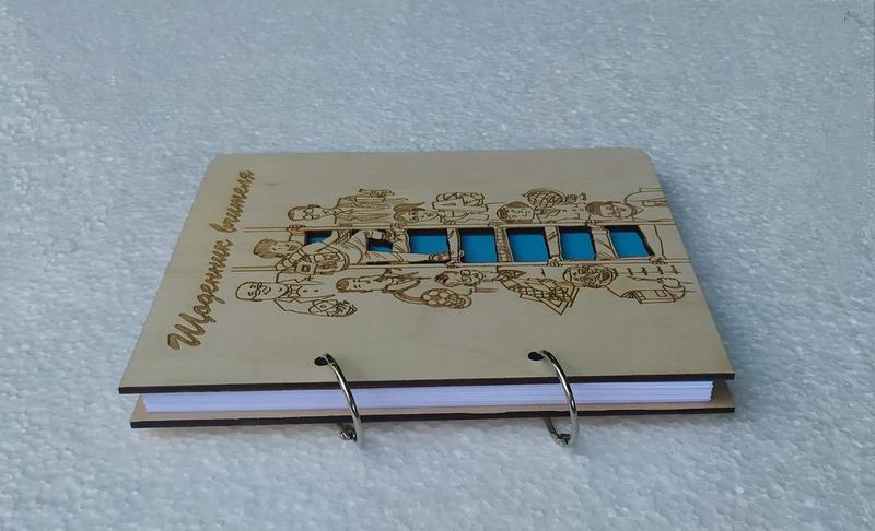 реальную пользу. Она всегда будет знать, что этот подарок ему дарили с душой.Необычный блокнот из дерева создан по индивидуальному эскизу. Этот аксессуар