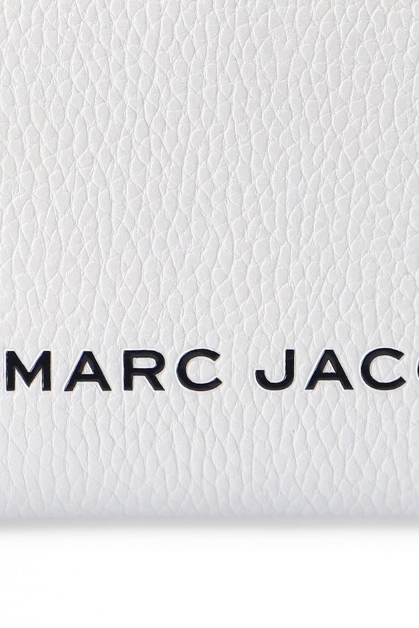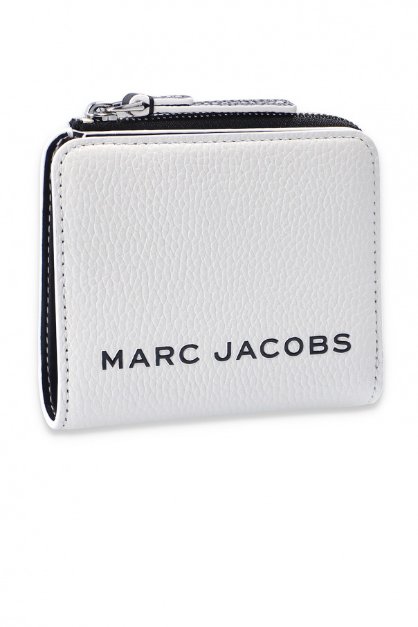 White and black wallet from Marc Jacobs. Embossed with the brand's signature in black, this leather-crafted item fastens via a snap and employs a slip pocket and a zipped coins on the back, a silver-tone metal hardware and interior with a bills compartment and six card slots.