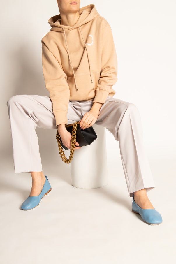 Blue ballet flats Lanvin. Crafted from lamb leather, this pair sits on a beige rubber-injected leather sole and features a contrasting textile finish with an embroidered logo on the back.