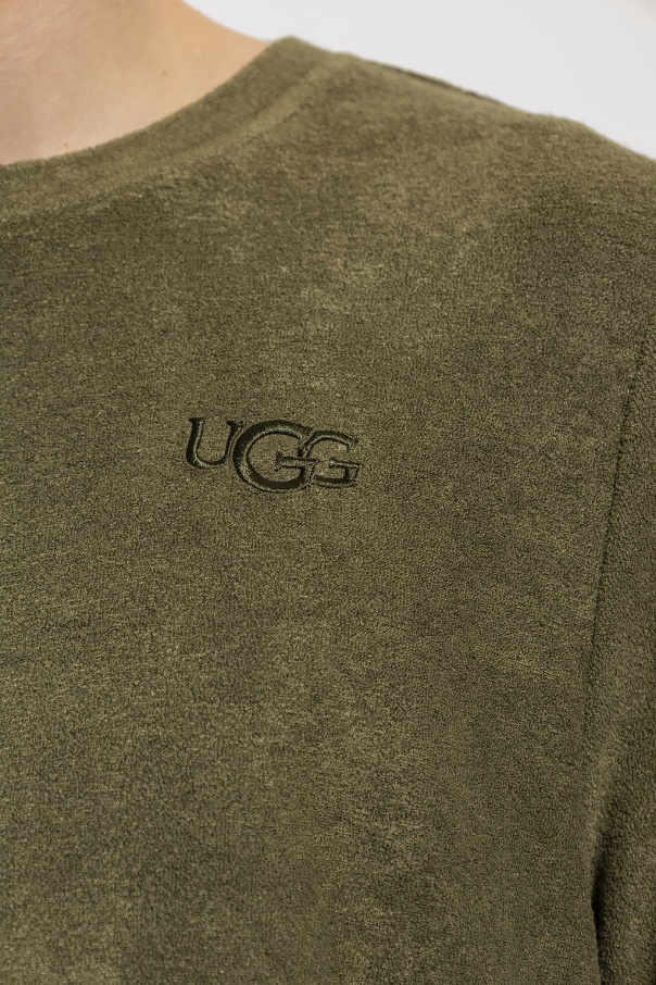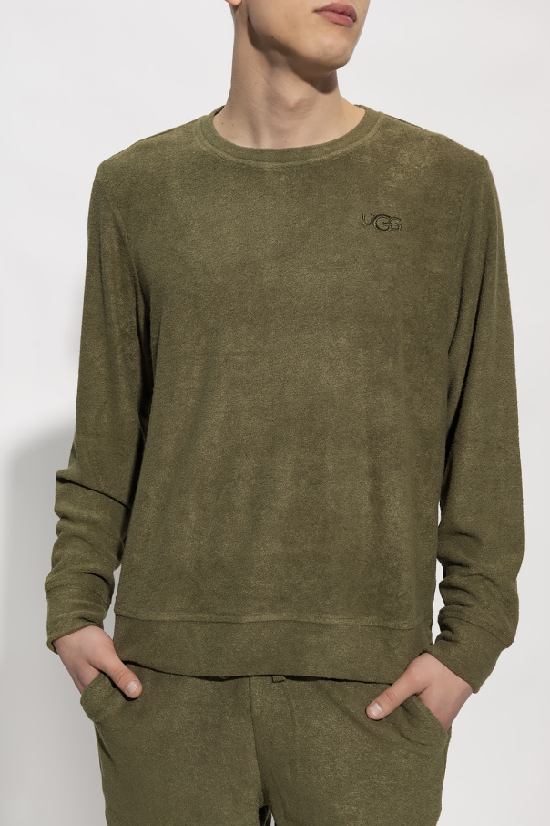 Green ‘Coen’ crewneck sweatshirt from UGG. Crafted in textured fabric, this style showcases an embroidered logo on the front and ribbed trims on the collar, bottom hem and long sleeves.