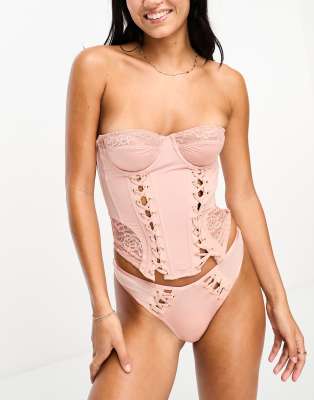 We Are We Wear vintage style lace up corset lingerie set in pale pink