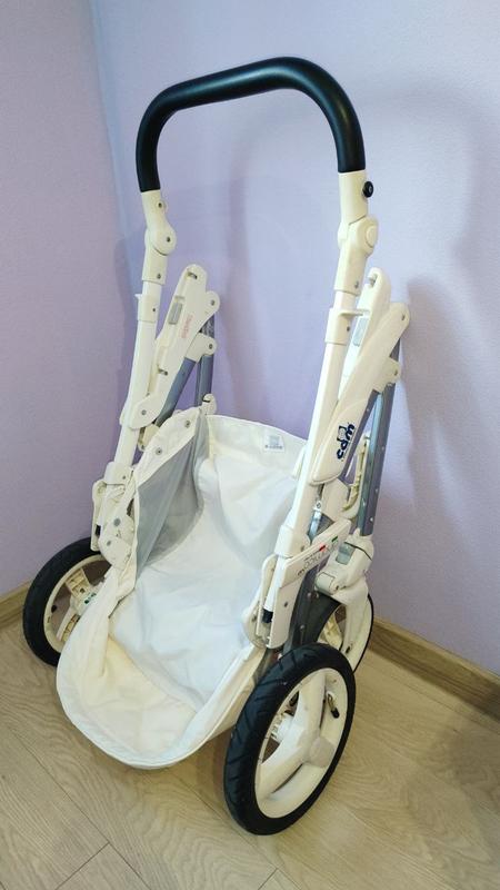 Состояние почти идеальное, есть несколько незначительных царапин. В пользовании люлька была 2 месяца, прогулка 5 месяцев.