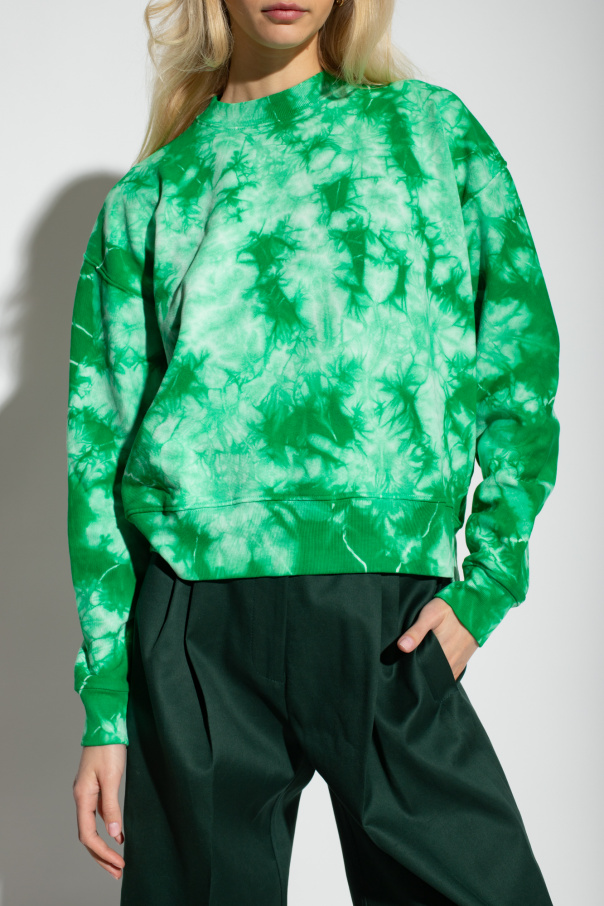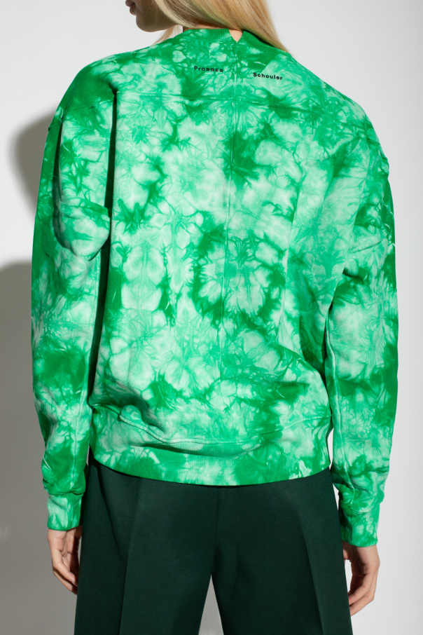Green crewneck sweatshirt from Proenza Schouler White Label. Crafted from tie-dyed cotton jersey, this style features a black logo print at the back, a split neckline and ribbed trims on the edges.