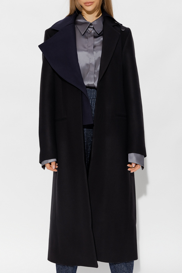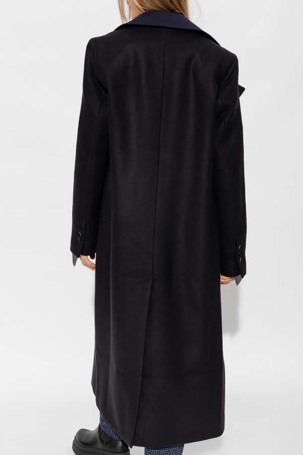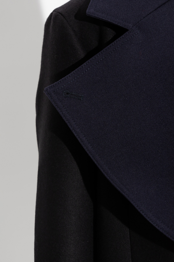 Black and navy coat from BITE Studios. Crafted from organic wool, this design features button fastenings, notch lapels and two slip pockets.