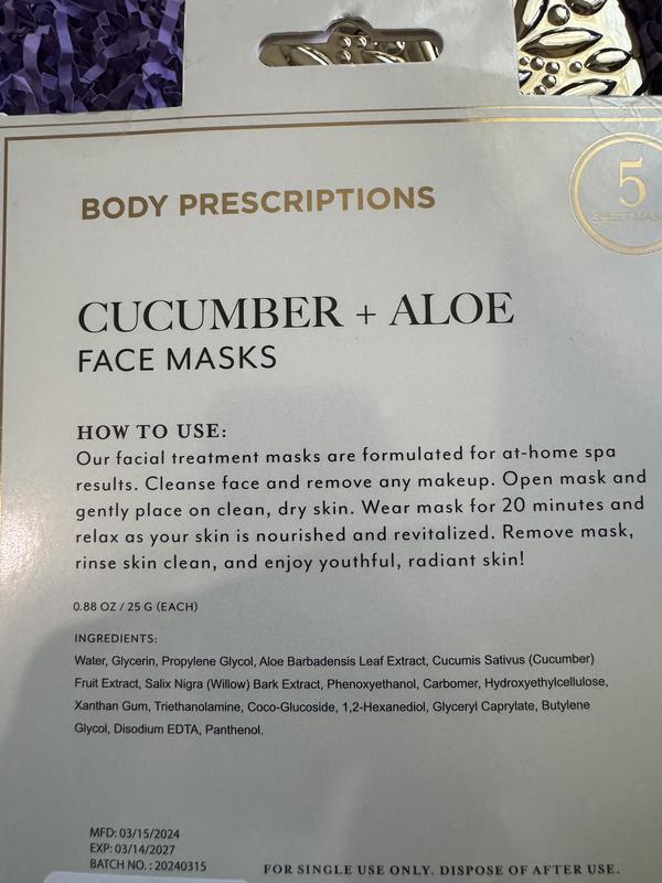 Для всех типов кожи!УВЛАЖНЯЮЩАЯ И УСПОКАИВАЮЩАЯ: Наша тканевая маска для лица с огурцом и алоэ обеспечивает глубокое увлажнение и успокаивающее облегчение сухой и обезвоженной кожи. Почувствуйте увлажненный и свежий цвет лица.