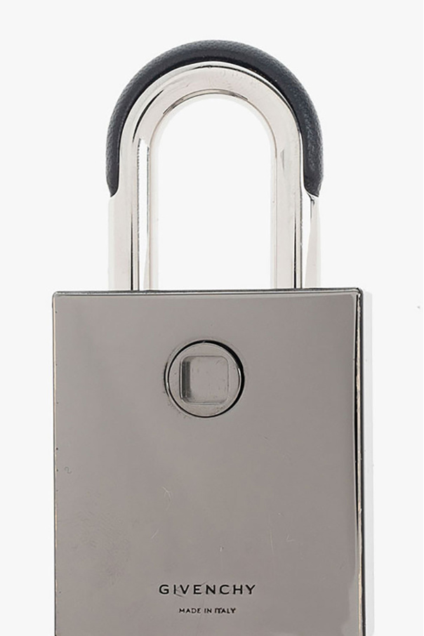 Silver-tone and black padlock from Givenchy x Chito. Embellished with a white paint-splatter effect, this item features an embossed logo on the front and an included key on a chain strap.