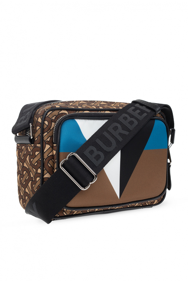 Multicoloured shoulder bag from Burberry. Enriched by a logo pattern, this design features a zip fastening, an external zipped pocket on the front, a pocket with a magnetic closure on the back, an adjustable strap, silver-tone metal hardware and one internal compartment with a slip pocket.