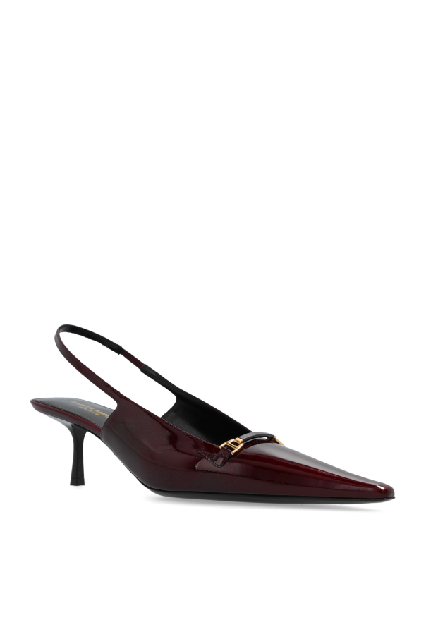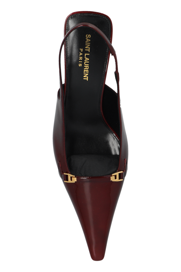 Introducing the "Carine" high heels by Saint Laurent, a testament to luxurious elegance and sophisticated design. Crafted from 100% calf leather, these shoes exude a glossy, patent-like finish in a rich, deep burgundy hue that captivates and charms at first glance. The pointed toe silhouette, combined with a sleek, medium-height heel, offers an exquisite balance of comfort and style. The "Carine" heels are distinguished by a delicate, golden embellishment placed atop the shoe, near the toe cleavage, adding a touch of opulence. The slender heel strap, adorned in the same patent material, wraps gracefully around the heel, ensuring a secure and flattering fit. A subtle but significant detail, the designer's logo imprinted on the interior side, signifies the authenticity and esteemed lineage of this piece. Photographs of the "Carine" heels, both on their own and as worn by a model, showcase the versatility and allure of these shoes. They seamlessly transition from formal attire to more casual ensembles, making them an indispensable addition to any elegant wardrobe. Why Purchase the "Carine" Heels? Exquisite craftsmanship from 100% calf leather. Luxurious, patent-like finish in a captivating burgundy. Unique golden embellishment adds a touch of elegance. Designer authenticity with Saint Laurent's logo. Versatile for both formal and casual styles.