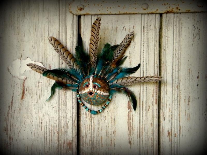Декоративная настенная маска Бирюзовый принц создана по мотивам африканских масок.