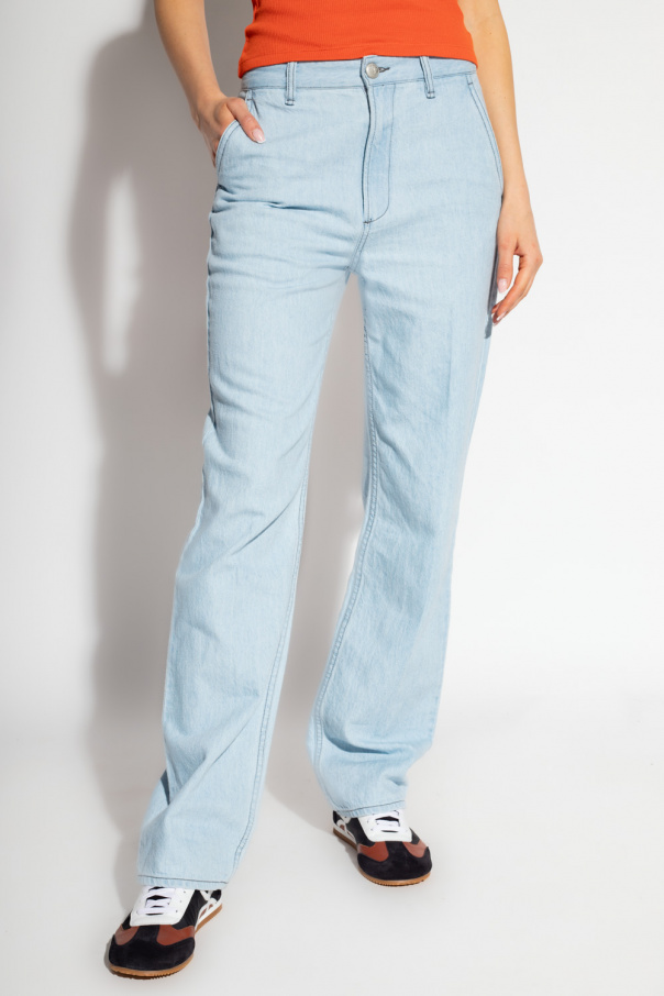 Light blue ’Alex’ jeans from Rag & Bone. Crafted from a soft blend of cotton and linen, this pair falls with straight legs and features a high-rise waist, a zip fly with a button, and four slip pockets.