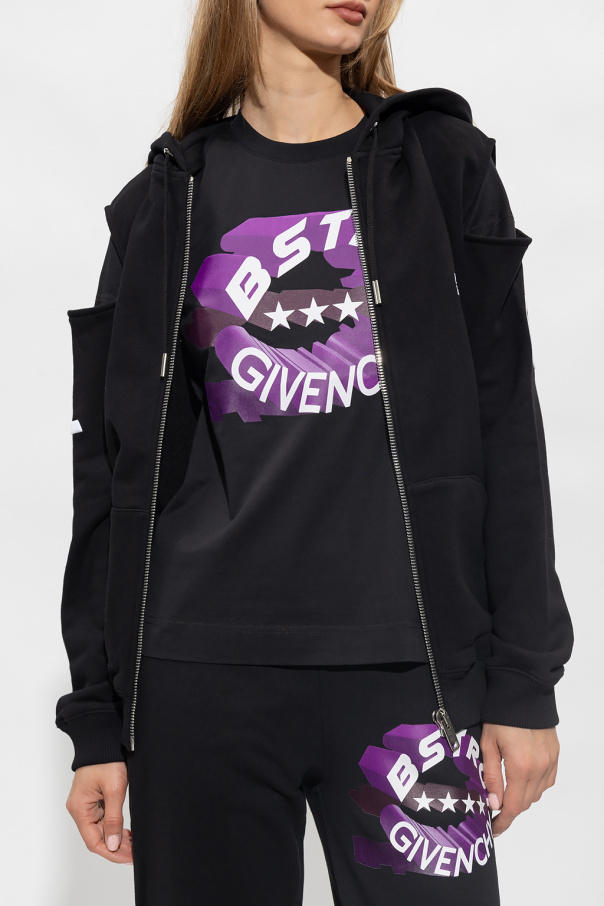 Black sweatshirt with a drawstring hood from Givenchy. Crafted from cotton, this style features a zip fastening, white logo embroidery, decorative cut-out detailing, wo frontal pockets, long sleeves and an elasticated bottom hem and cuffs.