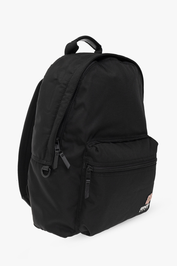 Black backpack from Kenzo. Fastened with a two-way zip, this garment features a pocket with a white zip, logo embroidery and red Boke Flower on the front. It is complete with a half-round handle, adjustable shoulder strap, black metal hardware and one internal compartment with one slip pocket and one card slot.